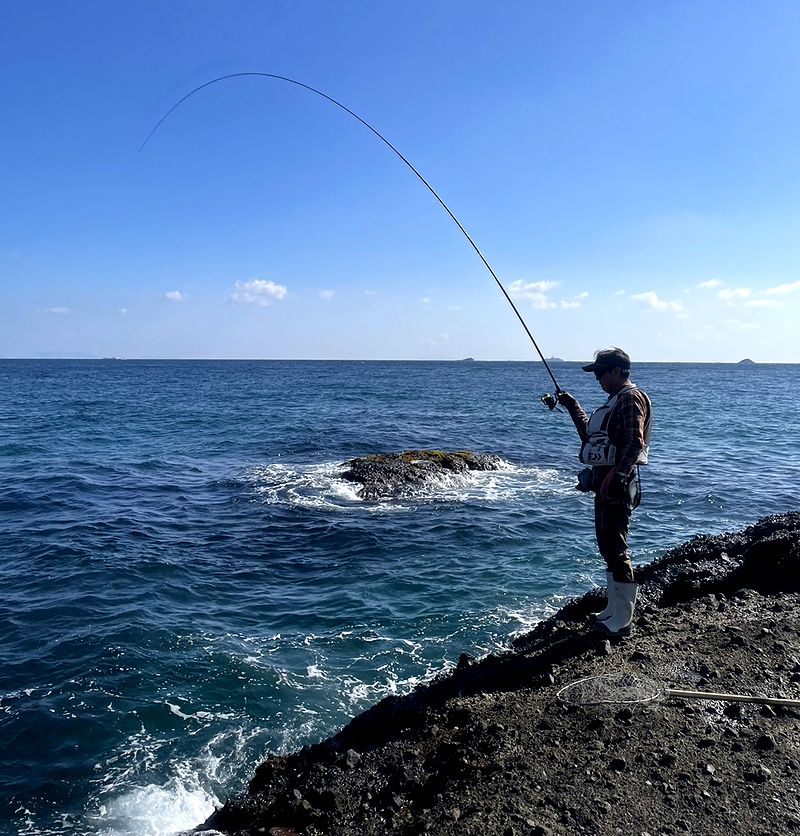 この日の珍しい魚というと、大型サイズのダツや大型のエイ、 そして掛けはしなかったが2mほどあるサメが足元をウロウロ(笑) その他、小魚を追いかけて海面で跳ねる良型の青物も見られた。 レポート 金田