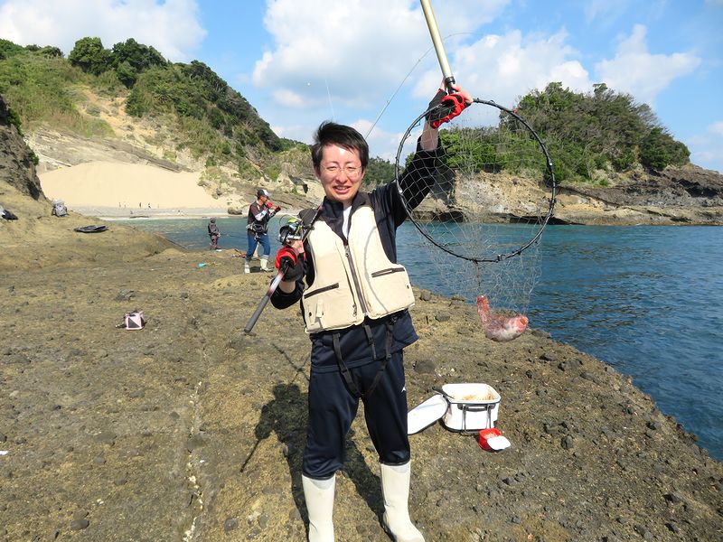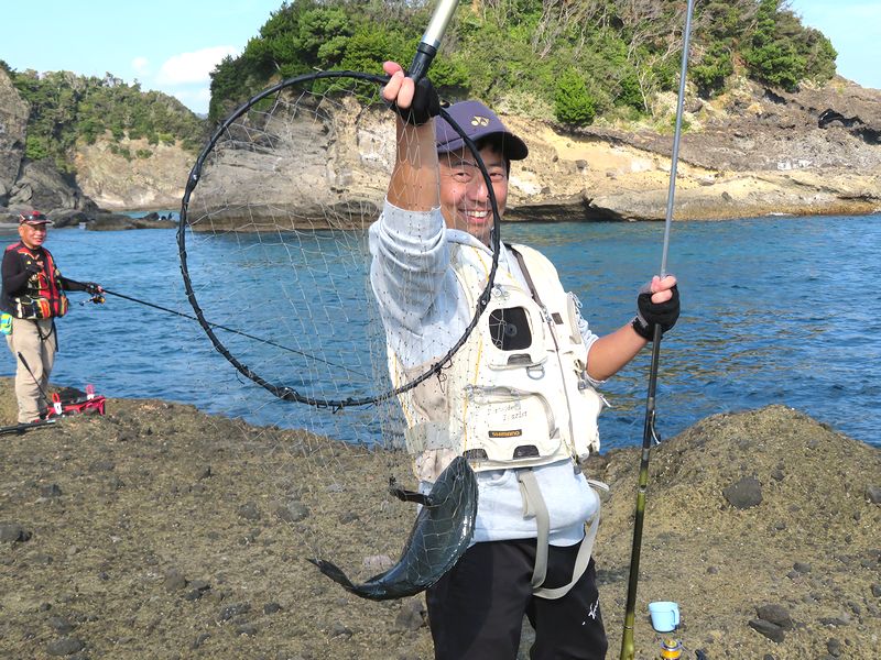 初めての磯釣り入門教室の方が40オーバーのスリルあるメジナをばらすことなく釣り上げられたのですから、私も嬉しい限り。