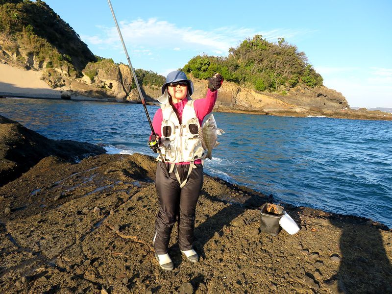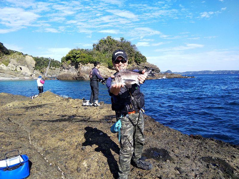 いろんな釣法の中、沈め釣りを体験していただき、見事に竿でアタリをとってのクロダイだった。