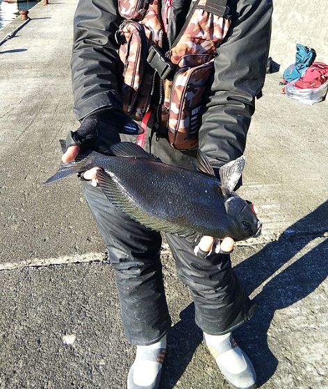 穏やかそうな日和だが気温は低かった。さて海の中は・・・ 前日は西風も強く堤防へ。 なかなかここも厳しい状況だったが、何とか良型を一枚。 それが下の画像。