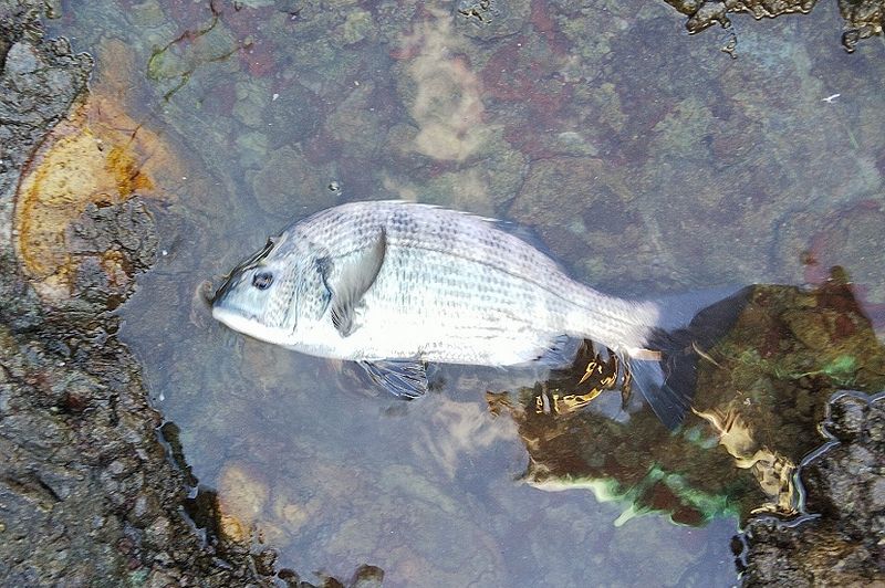 どっサラシの中タモ入れして見事なクロダイ。