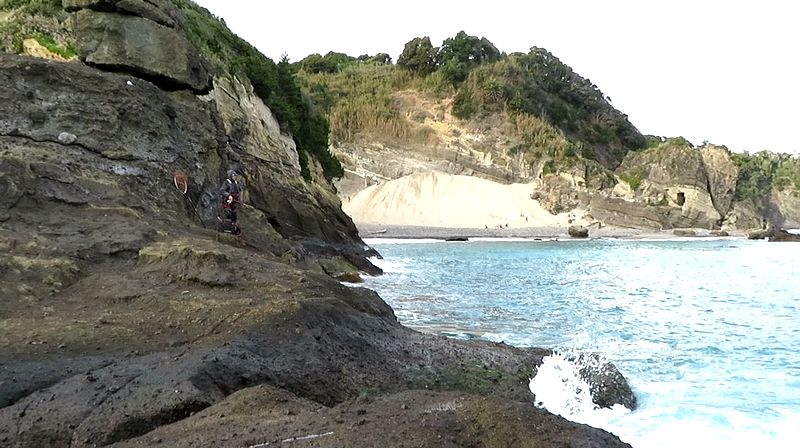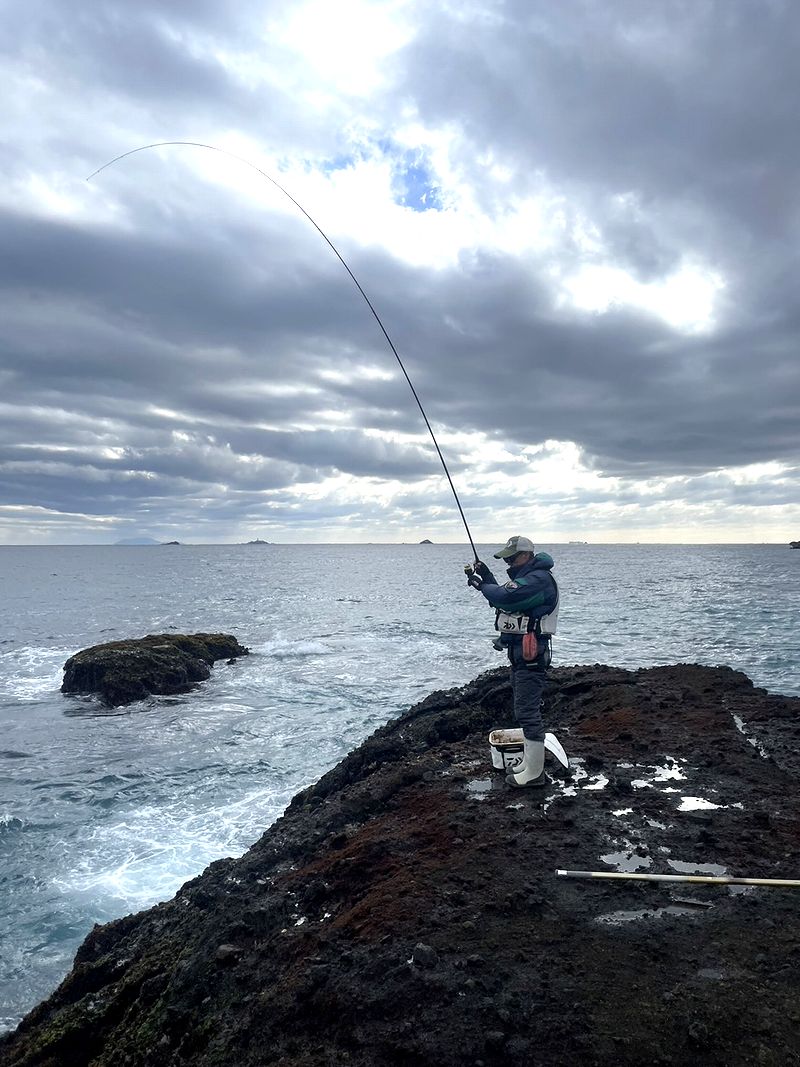 冬の海だが早々に良型らしきバラシ。チモトでスッパリ切られてしまった。 ちなみにハリスは2.5号。 萩やんもこの日2度のバラシ。 バラシたのは大型のメジナなのか、サンノジ、あるいはヒラスズキなのか悔しいけれど想像するのも楽しいものだ。 彼は美味しいヒゲダイや30p強のメジナも掛けていた。 私はというと、オキアミ餌と確実な海苔餌で40pのブダイなど(笑)