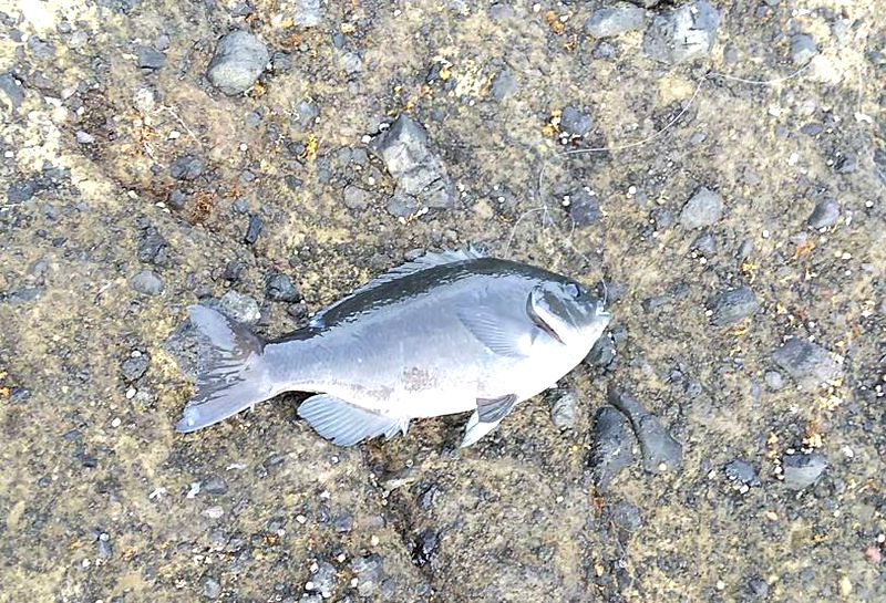良型のハマフエフキやサイズの良いサイズのオジサンも複数追加して そんな中、何やら横で見ていると竿は大きく曲がって、 横へ走る魚ではなく下へ下へ突っ込む竿先・・・これは? 予想通り本命のメジナの40クラスだった。 木っ端メジナも見えない中、メジナのこのクラスもここでは久しぶり。
