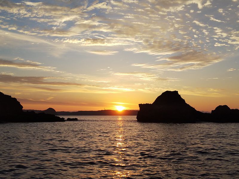 土曜の夕刻が雨模様なのであえて金曜の夜中から出発。 天候を見計らって自由な釣行が出来るのが地磯ならでわのこと。 3時過ぎから久々の朝間詰・・・朝陽も見事だが雲も気持ちよく泳いでいる感じでね。 さて暗いうちから萩やんは爆釣だった。 40オーバーのハマフエフキやらオジサンやら。 太陽が昇ってからも好調は続いていた。