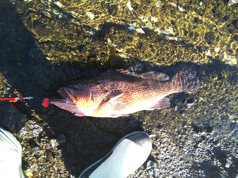 この釣り辛い状況の中で一人ジグやルアーやワームで頑張って、 なんと根には入れられそうになりながらもオオモンハタを^^ お見事です。そしてヒラメも追加して・・・ 推測するにフカセでの撒き餌が功を奏したか? なんて思ったりもして(笑) しばし竿の扱いも慣れてこられたお二人も小気味いいシマアジの引 きを 代わるがわる実感して楽しまれた様子。
