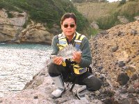 そうこうしているうちに、磯際の小メジナが出てきた。今度はそれを狙って数匹を掛ける。ボラの重量感とは違って小型でもメジナの小気味いい引き味はほとんどの受講生は未体験。20cmのメジナでも掛け、下へ突っ込まれた場合は思わず声も出る。