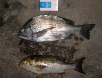 サイズは40cmにやや足りない程度。日中に出るクロダイよりは一サイズ大き目なのは夕マズメだからこそかな?石井氏に久々に(笑)写真を撮ってもらい、二人して顔を見合わせすぐさま戦闘再開(再笑)。