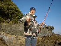 | 本日のお客様は、近くの利根川支流にて鯉や鮒釣りをたしなまれていたが、海も経験してみたいということでご一緒に。初めての磯釣りだが今回は鯛をご所望ということで、クロダイを中心に攻めてみることとなった。(少しだけ赤い鯛も期待したのだが) |
