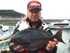 2001年12月27日、愛媛県南宇和郡西海町「中泊」(なかどまり) グレが好調に釣れている、(60オーバーも混じる)というのを聞きつけ、おこぼれ狙いで釣行! 「ひので渡船」にお世話になりました。 泊まりの人もおりましたが、「ノコギリの岡」へ渡した後、「コケの東」へ渡礁成功。(コケ西は、風が強くてこの日は、上がれない)ハリス4号、道糸3号、尾長専用針4号、ウキ下三ヒロほど、ハリスが太いので、仕掛けをパンパンに張っていましたが、当たりは小さく、ウキが十センチほど違ったリズムですっと沈むだけでした。