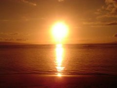 そのビーチからの夕日。少し日が高かったので、サングラスごしの夕日です。