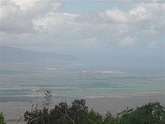 クラからの帰り道。涼しさにさよなら!暑い暑いカフルイが待っている。両側はずっとサトウキビ畑です。クラが山にあるのがわかりますか?クラからカフルイを見るとほんとに下のほうに見えます。クラからはキヘイ側とカフルイ側の両方の海が見えるのです。長袖がないと困るくらい、ほんとに涼しいクラです。木や花も全く景色が違います。週1度のクラを楽しみにしています。
