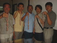 そして見事に完成。 このあと蒸し器に20分かけて 出来上がり。 茹でたて、出来立てのソーセージは 格別の美味さが。 味の違いは塩加減かな? 完成品はこのあとのBBQへ持ち込まれた。 |