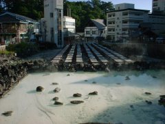 草津温泉の中心地「湯畑」 このお湯はその量と殺菌力ある効能に魅力を感じざるを得ない。 夜はライトアップされて、湯畑近隣の |