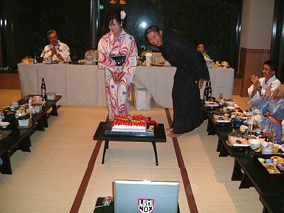 記念写真撮影後 皆さんには温泉にゆっくり浸かって頂いて、夕刻より浴衣で披露宴に・・・ |