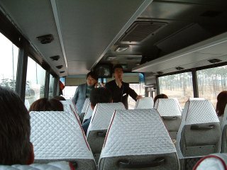 中型バスへ乗り込み、LTC社の小暮さんと