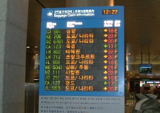 到着便別に表示されたバゲージターンテーブル
