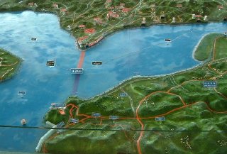 室内の模型で説明すると、橋の様に見える部分で約3.5キロ?