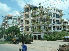 間口が狭く、奥に長く、縦に伸びるレンガ造りのベトナムらしい近代建築か?