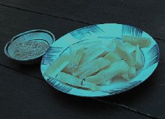 R ベトナムで始めて口にした食物。 クチトンネル見学の途中に 出してくれる芋菓子。 塩、砂糖、胡麻に付けて頂く。 もちろんお茶ののサービスも。