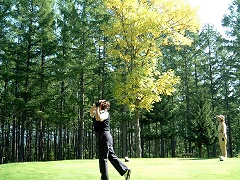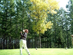 | ところどころに紅葉が・・ でも左のお方のスイングは なかなかのものでしょ。 このお方が今回の優勝でした |